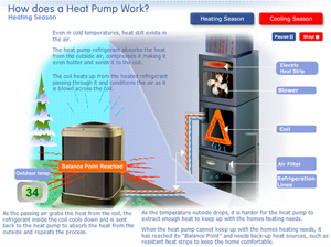 6.) When the heat pump cannot keep up with the homes heating needs, it has reached its "balance Point" and needs back-up heat sources, such as resistant heat strips to keep the home comfortable.